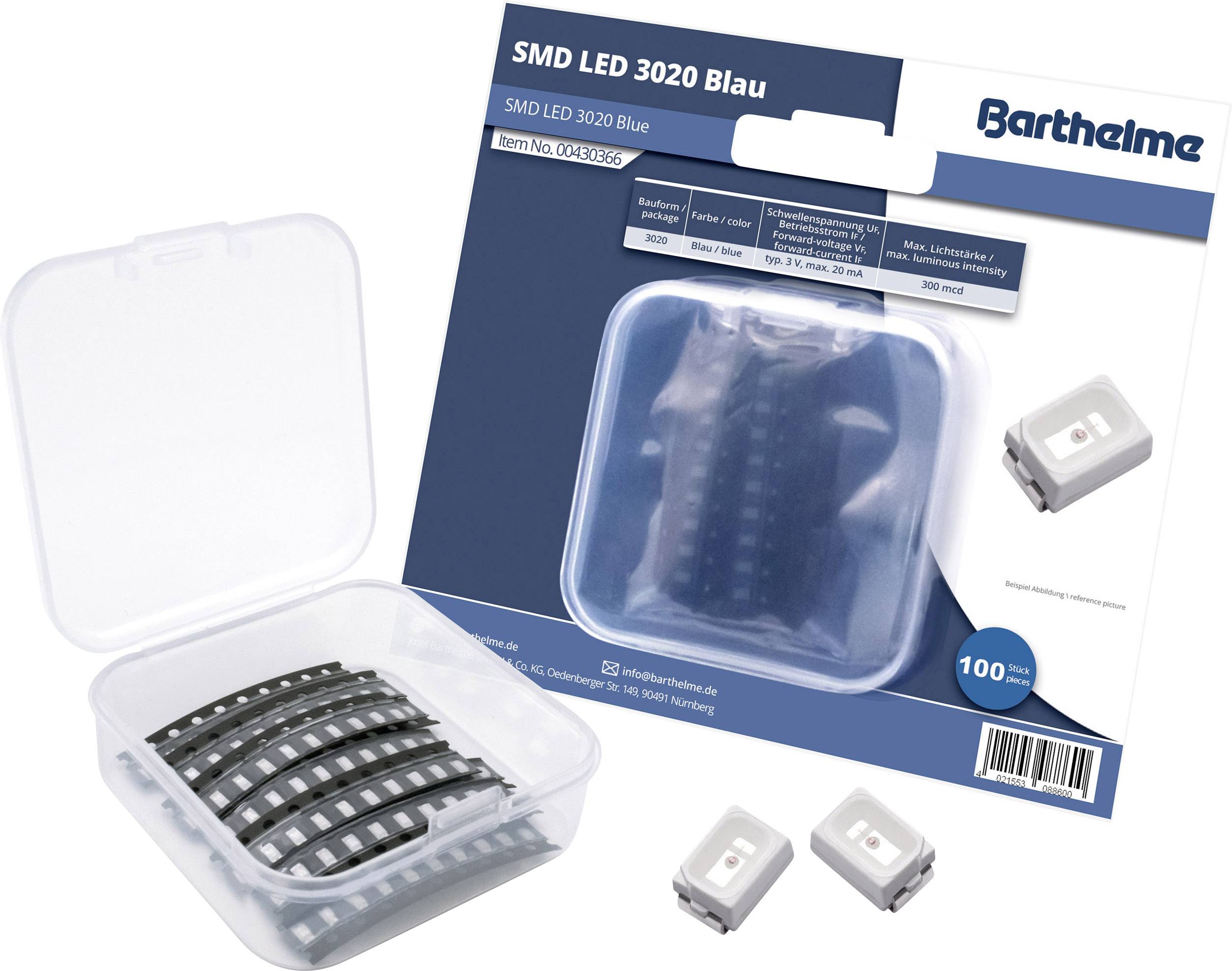 Barthelme SMD LED set 3020 modra 300 mcd 120 ° 20 mA 3 V 100 kos Bulk