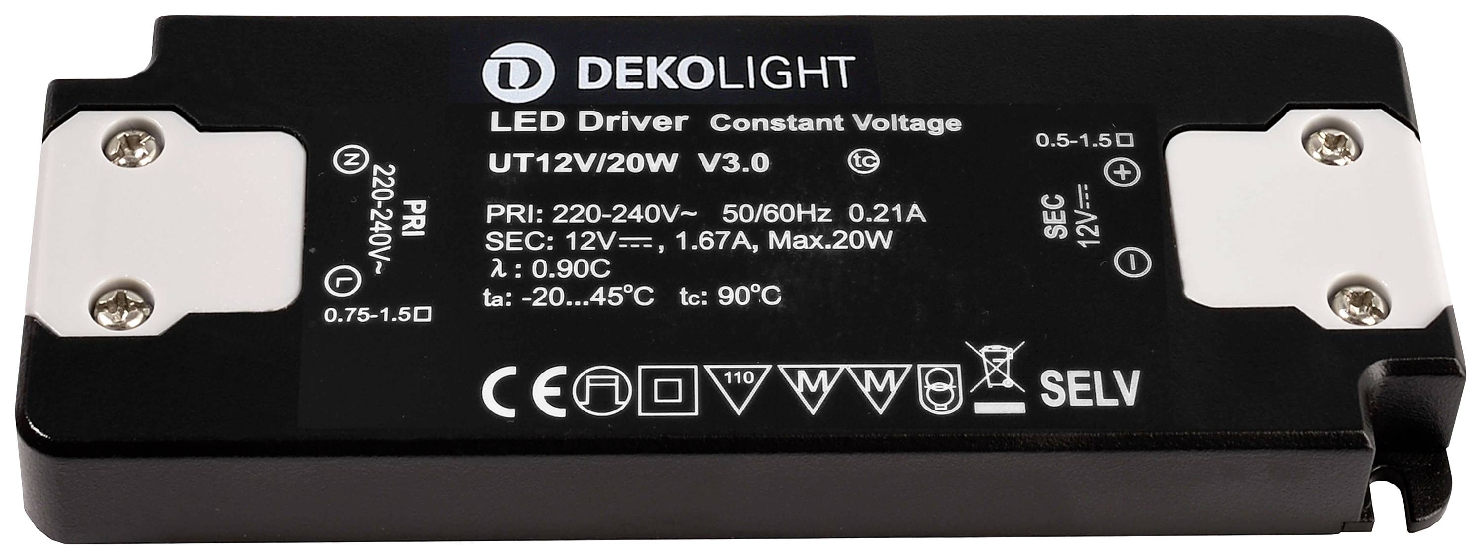 Deko Light FLAT, CV, UT12V/20W LED gonilnik 20 W 0 - 1670 mA 12 V 1 kos