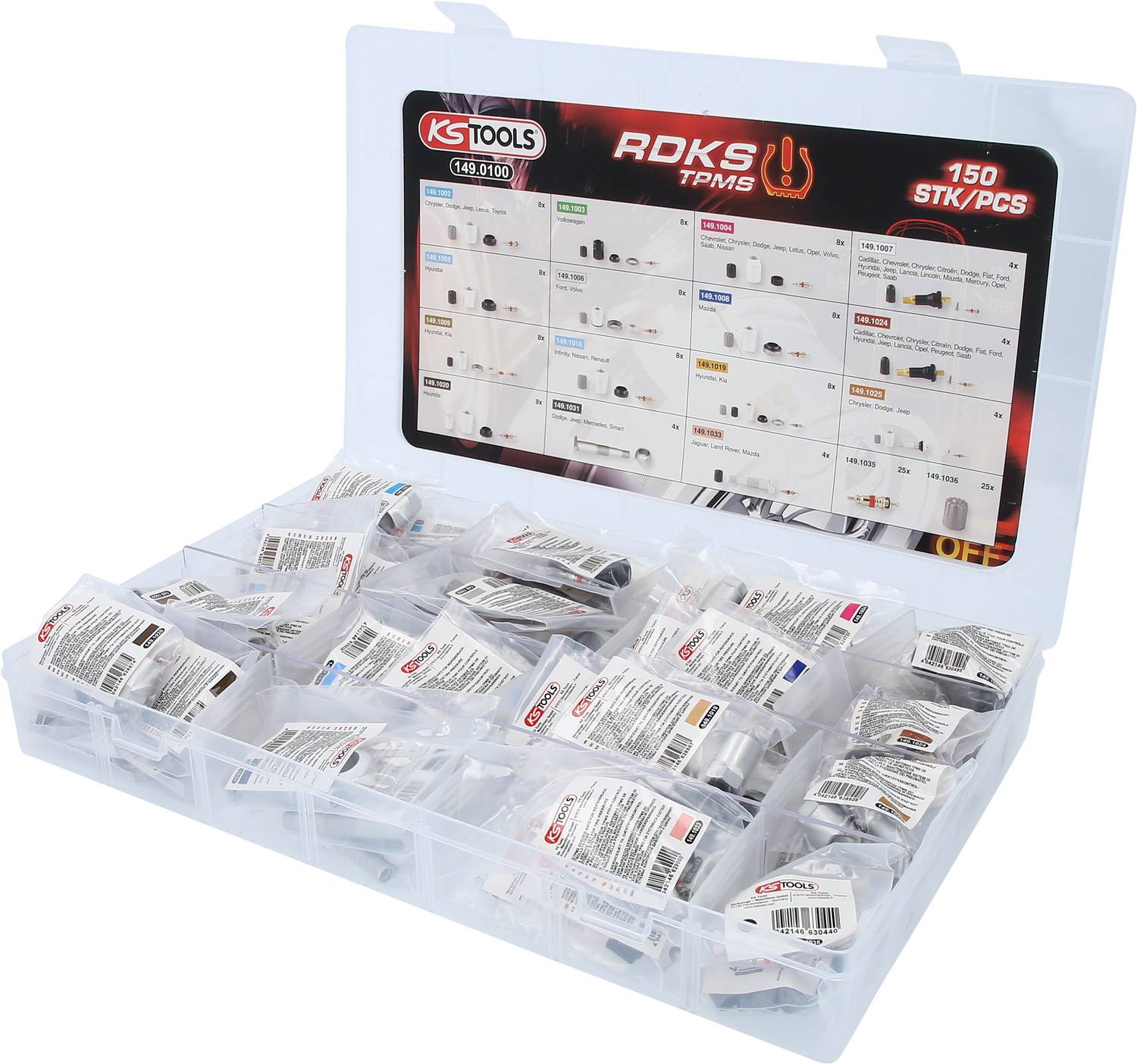 TPMS / TPMS servisni asortiman za sisteme za nadzor tlaka v pnevmatikah, 150 kos KS Tools 149.0100